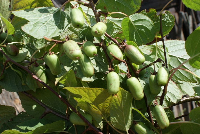 - долговечность. Плоды актинидии Сентябрьская на вкус приятно-кислые, имеют выразительный аромат. На протяжении года листья лианы меняют свой цвет от бронзового весной до малиново-красного поздней осенью.
