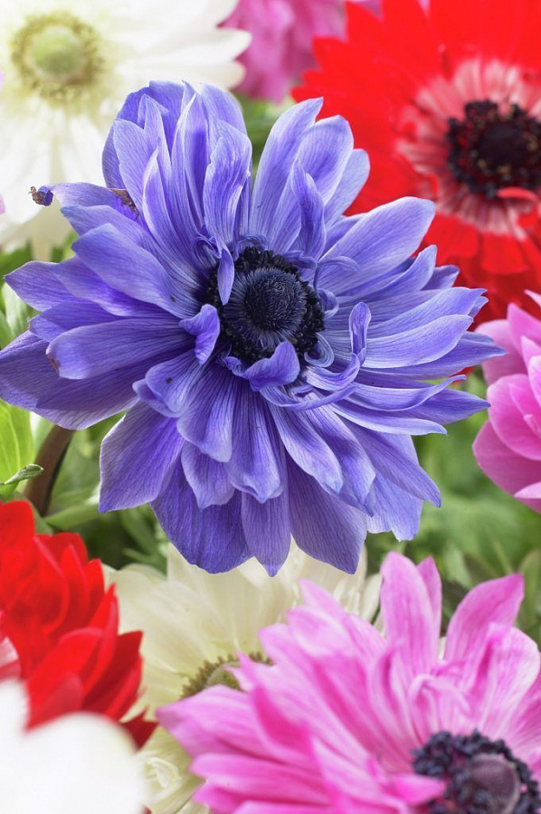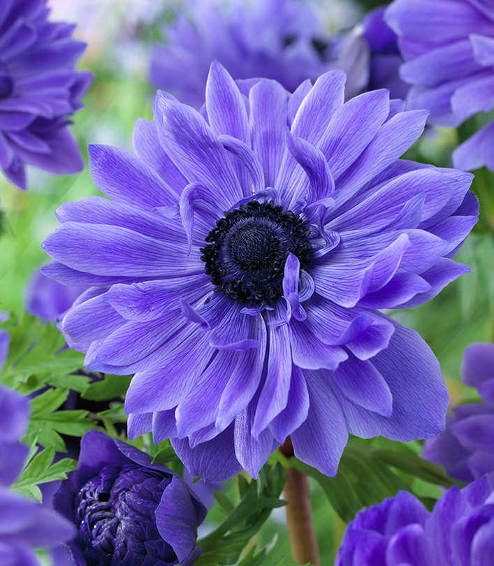 Луковицы анемоны махровой Лорд Лейтенант (Lord Lieutenant) – эффектный цветок с необычными сине-фиолетовыми лепестками на фоне изумрудной листвы. Прямые стебли держат очаровательные густые соцветия. Второе название – ветреница. При густой посадке цветущее растение напоминает синее облако. Длительность цветения до 2-х недель.