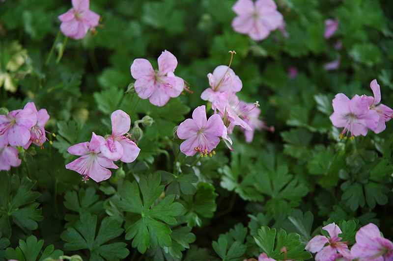 Рассада герани далматской хорошо разрастается на солнечных участках. К почве растение не требовательно. Но если хотите, чтобы семена герани далматской быстрее проросли, то выбирайте места с плодородной, разрыхленной, дренированной землей. Недостаток сорта заключается в том, что оно может поражаться бурой пятнистостью и мучнистой росой. Чтобы такого не допустить, растение нужно срезать после цветения. Несомненным достоинством является то, что сорт морозоустойчив и хорошо переносит даже самые суровые зимы. Высота подросшей рассады герани гималайской – от 10 до 15 см. Период цветения – с июля по август. Цветочки небольшие розового цвета.