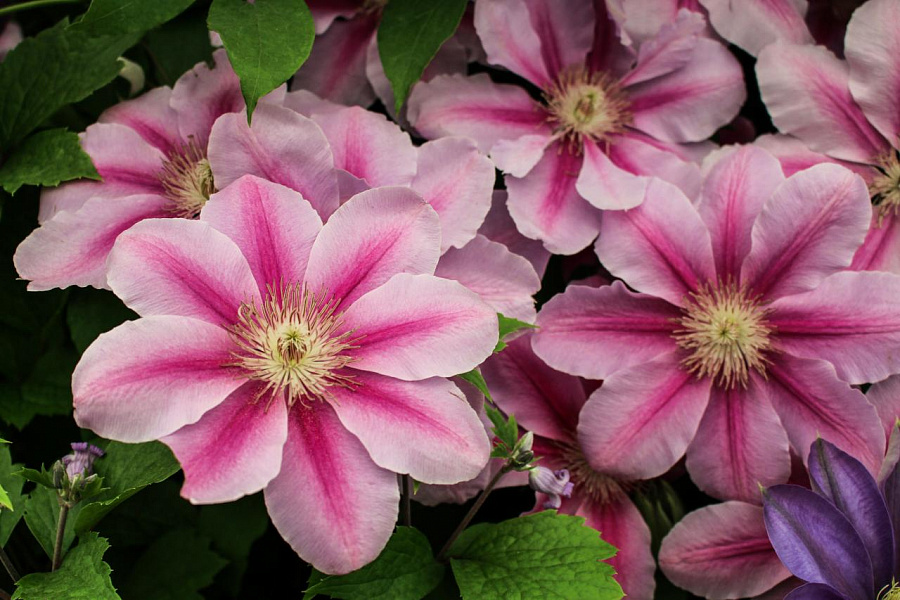 Листья клематиса имеют изящную форму, что придает растению особый шарм. Для выращивания Bees Jubilee выбирайте солнечные или полутенистые места, где он будет чувствовать себя комфортно. Растение требует умеренного полива и регулярного удобрения для обильного цветения.