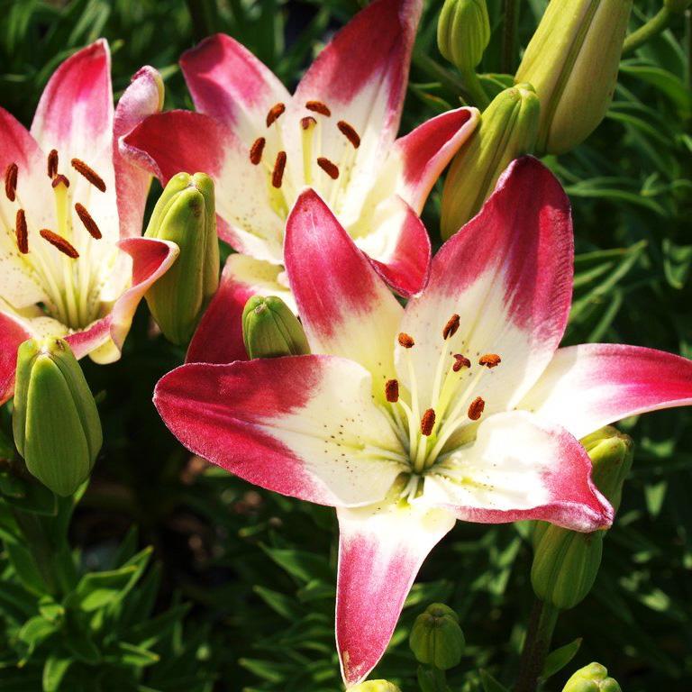 Луковицы лилии Lollypop абсолютно неприхотливы в уходе и подходят для выращивания даже малоопытному садоводу. Высаживают растение на хорошо освещенных участках в лунки на расстоянии до 25 см. Культура любит питательную рыхлую почву, хорошо зимует без укрытия. Вырастает лилия Lollypop в высоту до 120 см. Цветки крупные, чашевидные, диаметром до 15-20 см. Лепестки двухцветные: серединка белая, а кончики ярко-малиновые. Особенность сорта – практически полное отсутствие аромата. Растение используют для цветников и выращивания на срез.