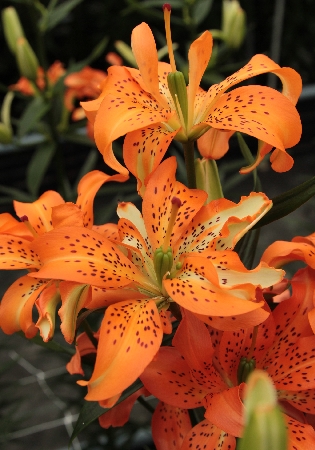 Окраска цветка : цветы ярко-оранжевые с темными вкраплениями, со временем меняются на белые с салатовым центром, крап остается, цветение длительное
