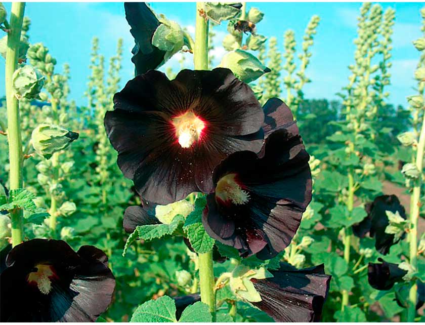 Шток-роза черная - это удивительное растение с шоколадно-коричневыми цветками, которые привлекают взгляд своей необычной окраской. Ее ствол прочный и прямой, достигает высоты до 150-160 см, что делает ее идеальным украшением для вашего сада или огорода. Листья этого растения имеют элегантную форму и придают ему особый шарм.