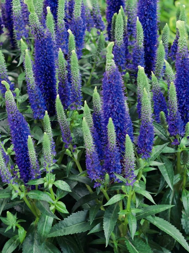 Рассада вероники колосистая Алстер Дварф Блю (змеиная трава Veronica spicata) отлично себя чувствует на любых почвах и переносит даже сильные зимние морозы без укрытия. Взрослый куст достаточно декоративен, особенно во время цветения. Насыщенно-синие, колосовидные соцветия украшают растение 35-40 дней с середины июня по конец июля. После отцветания, колоски срезают, чтобы заново отрасли зеленые побеги. Высота культуры около 30-40 см. Компактные размеры и высокая декоративность делает веронику колосистую Алстер Дварф Блю незаменимой в миксбордерах и рокариях.