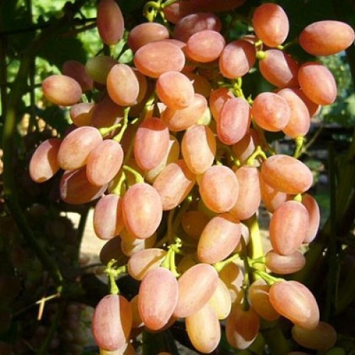 Семена и саженцы винограда плодового Кишмиш лучистый пользуются популярностью среди садоводов из-за короткого срока созревания и большого объема собираемого урожая. Кусты сильнорослые и на них вырастают грозди ягод розового и бордового оттенков. Одна виноградина достигает веса в 4 грамма, обладает плотной и сочной мякотью, без косточек, сладкая. Грозди достигают в длину 40 см и весят 600 граммов и больше. Благодаря своим особенностям такой виноград долго храниться и отлично подходит для транспортировки. Высаживать виноград нужно на хорошо освещенном участке сада.